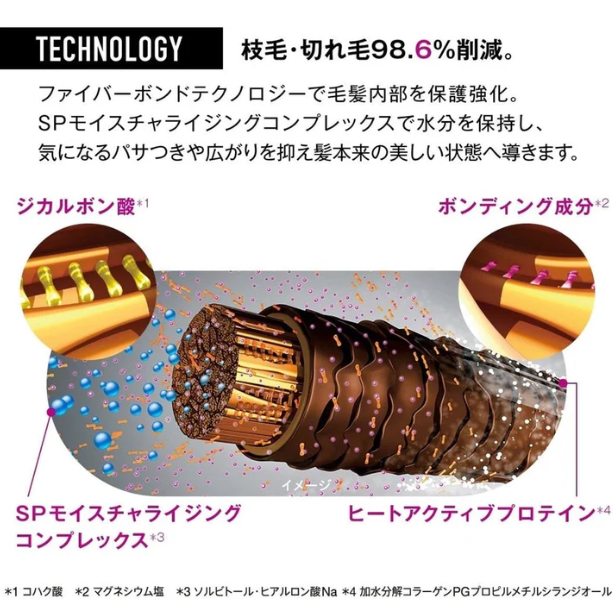 フィブリル間にジカルボン酸を補い、日々徐々に進行していくダメージから毛髪を保護。毛髪の素地を整えることでカラーの色持ちもアップ。まとまりやすくしなやかな髪を保ちます。