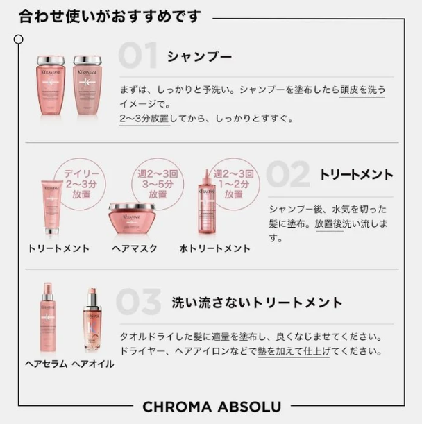 ケラスターゼ「クロマアブソリュ」シリーズのシャンプー・トリートメント・オイルに